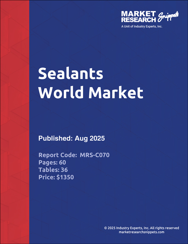 This world market compendium by Market Research Snippets, a unit of Industry Experts Inc, analyzes the market for Sealants at high level by end-use application, technology, chemistry and geographic region. The market is studied for historical/current trends and future forecast in terms of volume in metric tons and value in US$ for 2021, 2024 and 2030.