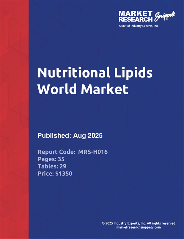 This world market compendium by Market Research Snippets, a unit of Industry Experts Inc, analyzes the market for Nutritional Lipids at high level by product types, forms, sources, application and geographic region. The market is studied for historical/current trends and future forecast in terms of value in US$ for 2021, 2024 and 2030.